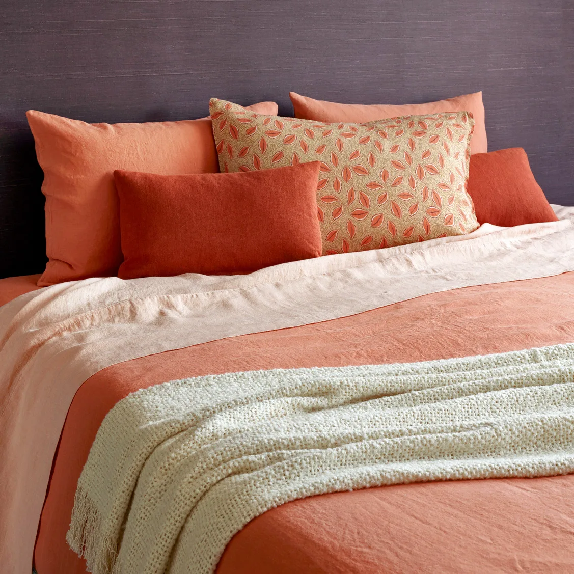 De natuurlijke tinten van ons linnen zijn geïnspireerd door de pure elementen van de natuur en brengen rust en warmte in elke ruimte. Daarnaast zijn we trots op ons lokaal productieproces: door samen te werken met Belgische weverijen ondersteunen we niet alleen de lokale economie, maar dragen we ook bij tot een duurzamer productieproces met een kleinere ecologische voetafdruk.